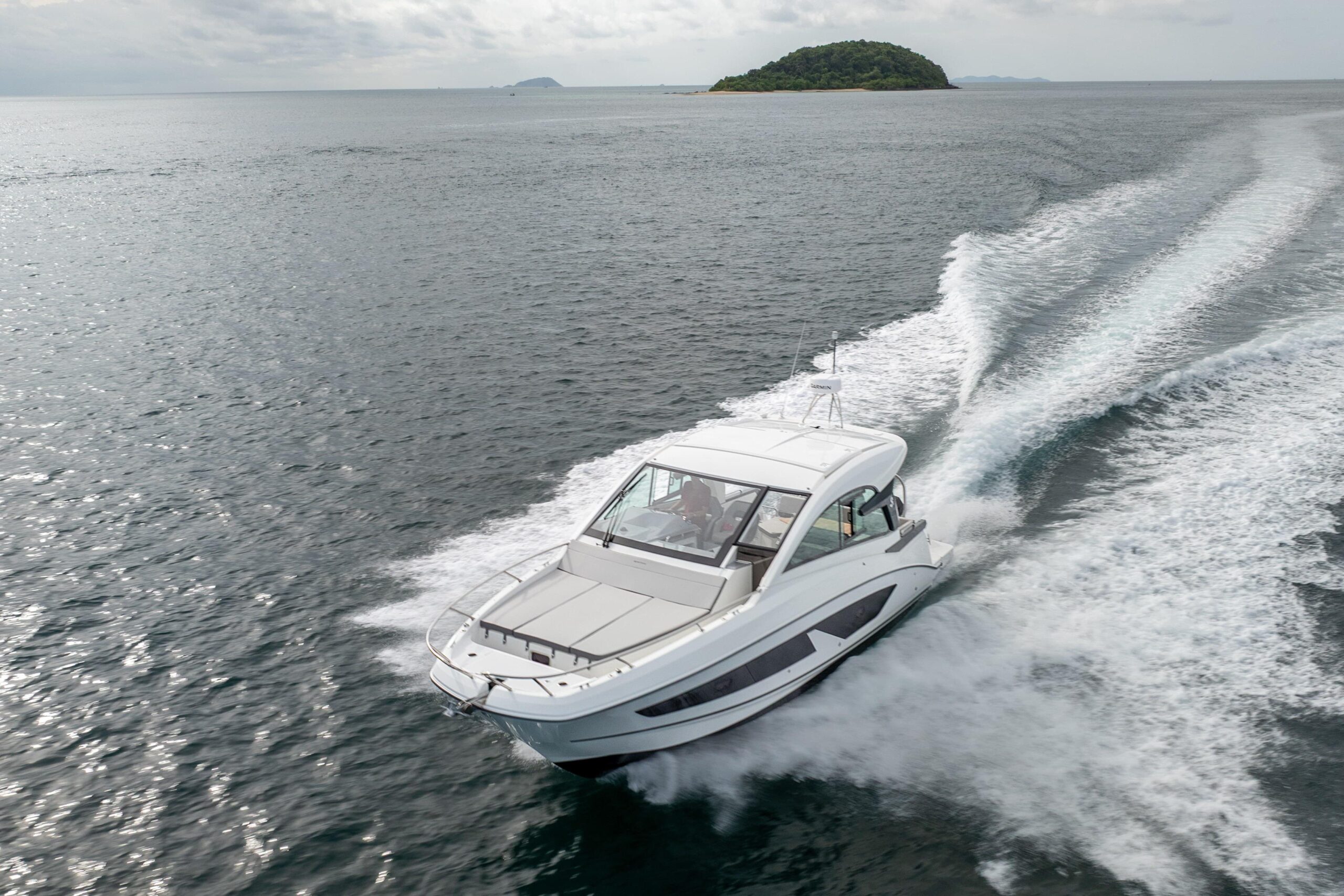 The Gran Turismo 32 is expertly designed to maximize space and versatility, making it ideal for all-season cruising. With an emphasis on natural light and ventilation, its sleek, modern profile enhances both style and comfort. The well-arranged upper deck ensures seamless interaction between spaces, while generous headroom provides an open and airy feel. For added flexibility, the large windscreen can be closed, and the roof can be opened or shut, allowing for a truly adaptable boating experience.