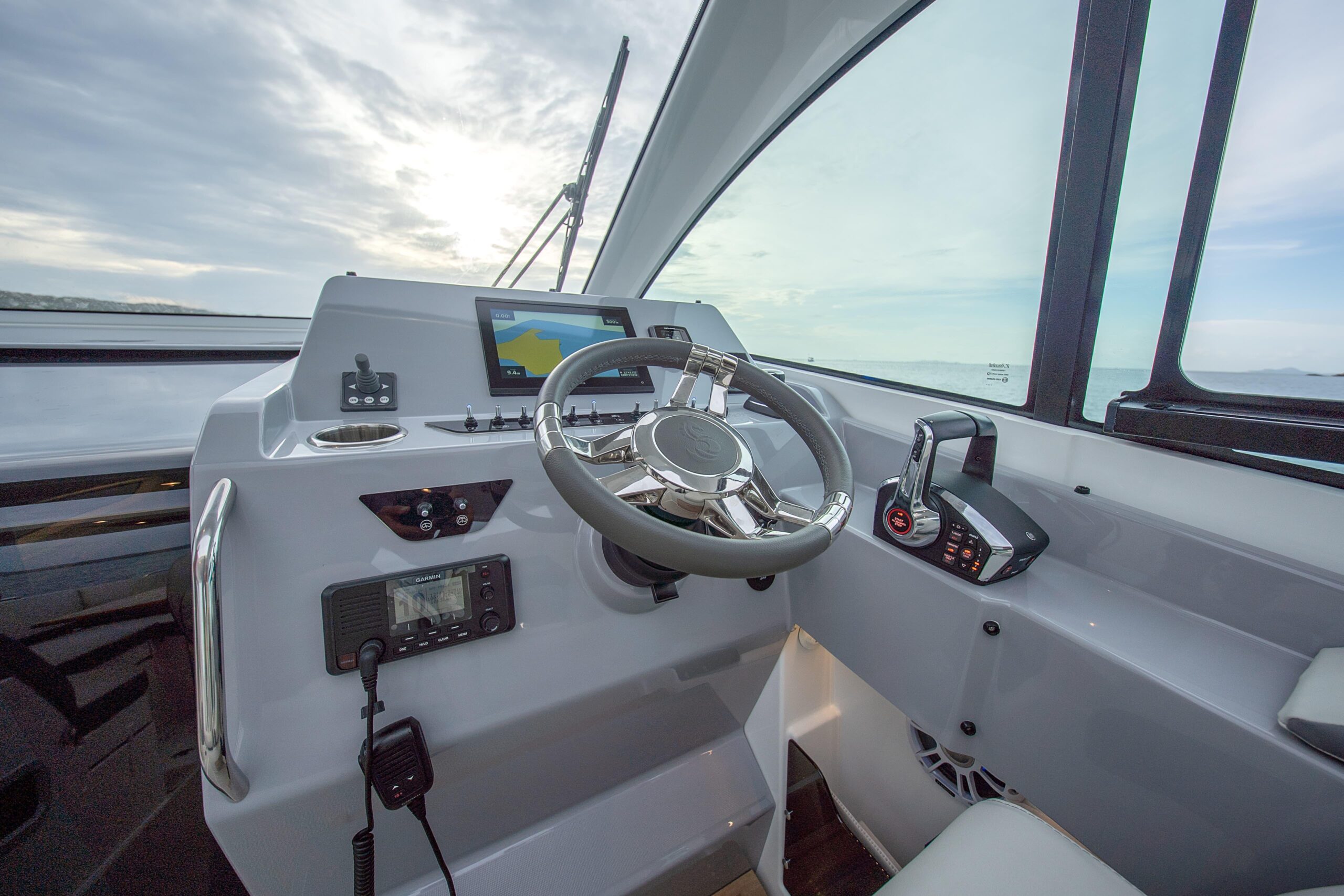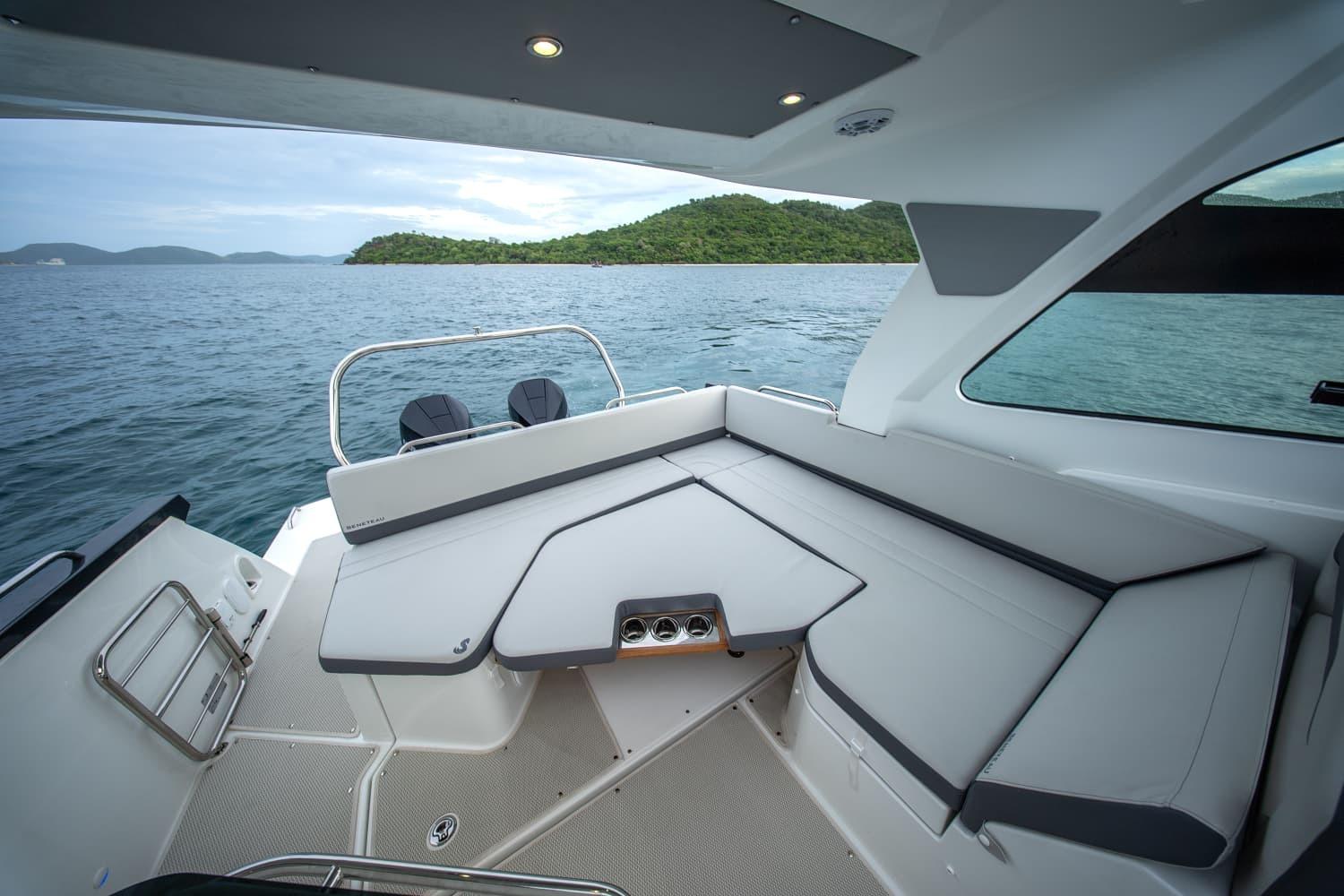 Her modern-looking sides reflect the light elegantly. There is good interaction between the various spaces on the upper deck, which are well arranged, with all the features of a cleverly designed boat. The Gran Turismo 32 has good head clearance and will appeal to anyone who loves an open boat. They will never feel claustrophobic.