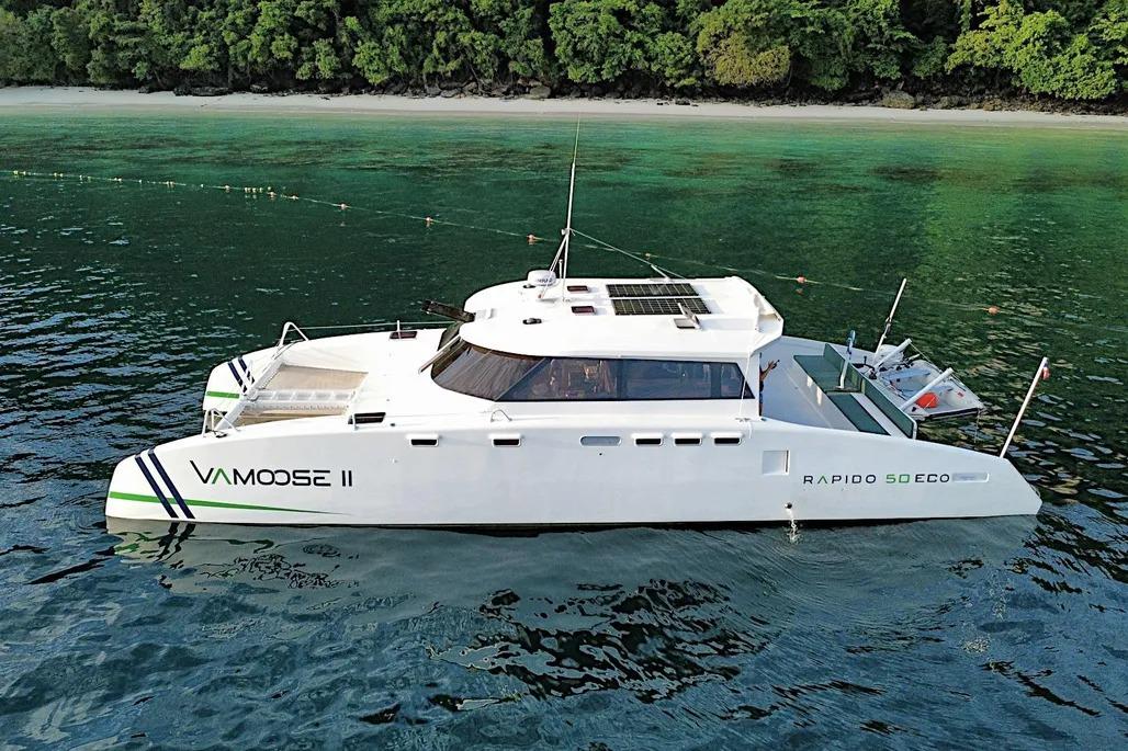 Built by Triac Composites, the team behind the renowned Rapido Trimarans, the Rapido 500 ECO Power Cat embodies decades of expertise in high-performance, lightweight multihull construction. Using advanced composite technologies, Triac has created a vessel that is exceptionally strong, remarkably light, and engineered for peak efficiency — all while maintaining the highest standards of safety.